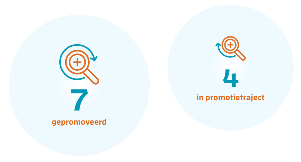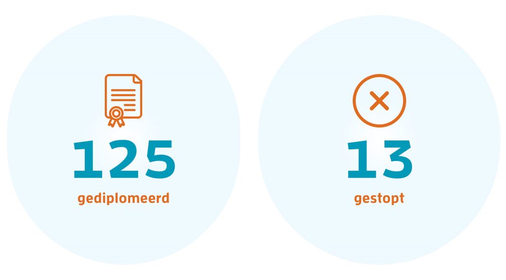 In 2021 hebben 125 aios M+G met succes een diploma behaald. Een deel is nu gediplomeerd arts M+G, een ander deel kan nu doorstromen naar fase 2. Van de aios M+G zijn er 13 gestopt zonder diploma. Dit kan op verschillende momenten in de opleiding. En om verschillende redenen. De meeste aios M+G stopten hun opleiding op eigen verzoek. Ruim 90% van de aios M+G rondt de opleiding af met een diploma op zak.