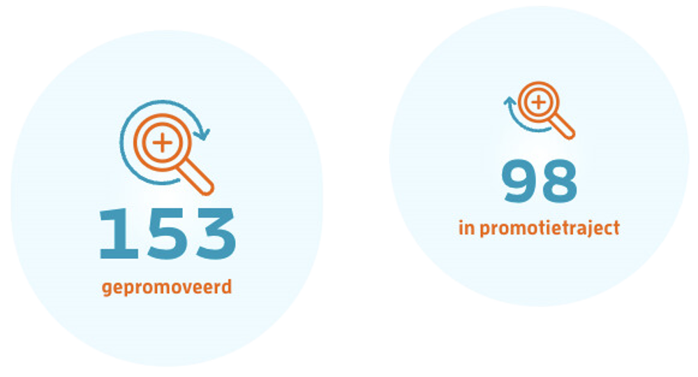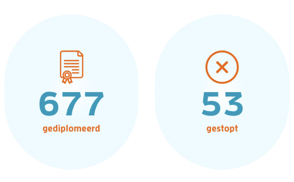 Van onze aios H hebben 677 de opleiding in 2022 succesvol afgerond. Zij zijn nu geregistreerd als huisarts. 53 aios H zijn gestopt zonder diploma. Soms op eigen verzoek, soms omdat de opleiding dit besliste. Uiteindelijk rondt gemiddeld 92,7% van de aios H de opleiding af met een diploma.