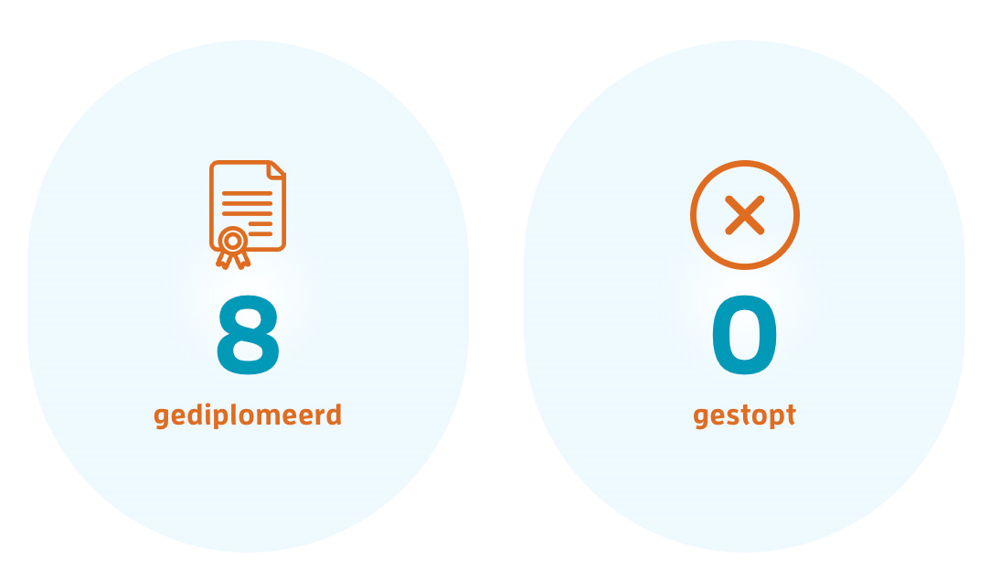 De opleiding duurt voor de ene aios langer dan voor de andere. Soms is een aios sneller klaar door vrijstellingen. Afgelopen jaar hebben 8 van de aios VGK bij ons in dienst de opleiding afgerond. Zij zijn nu geregistreerd als verslavingsarts. Geen van onze aios VGK is afgelopen jaar gestopt zonder diploma.
